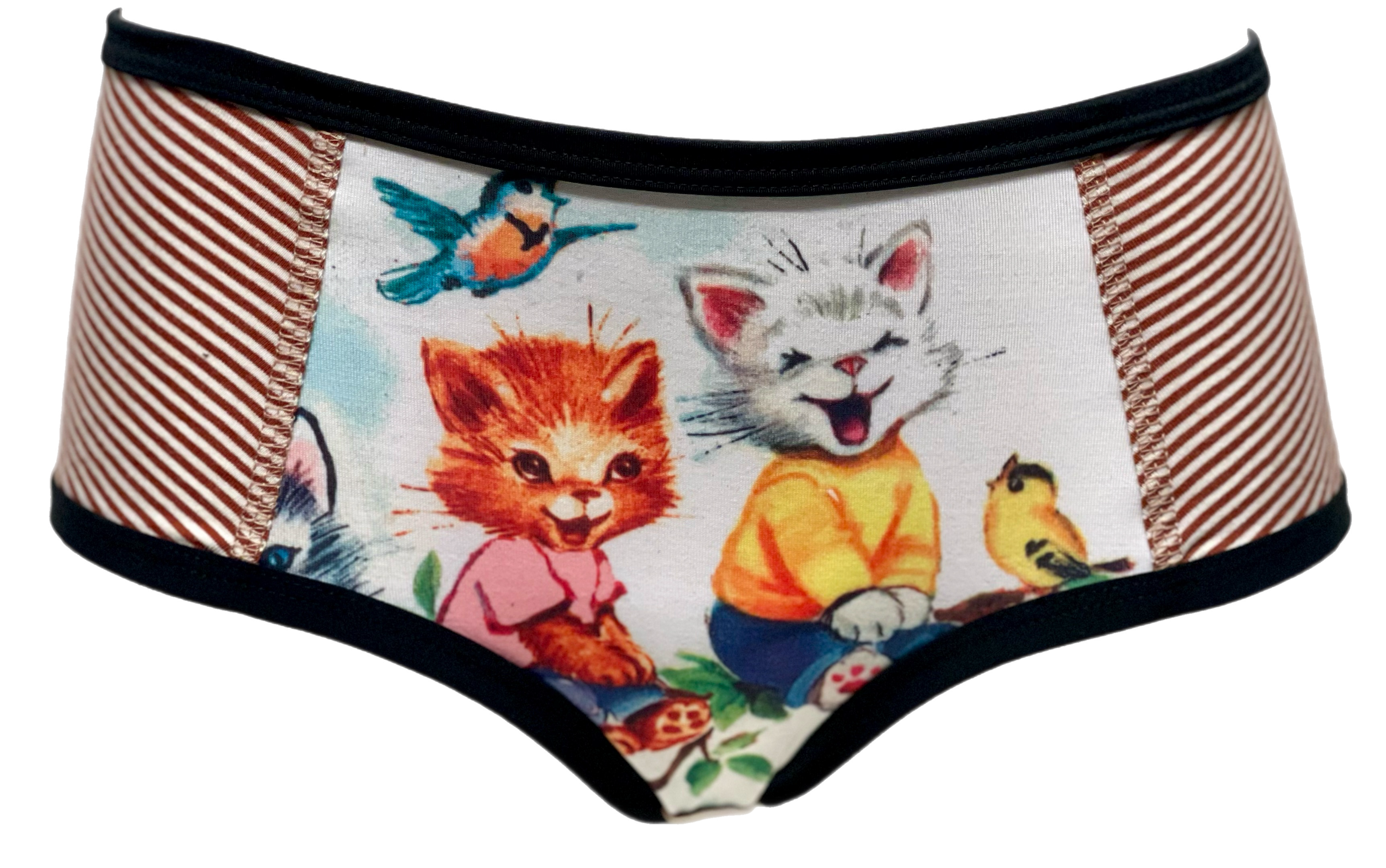 The stripes wrap around the back of these cuties, and the only seams are the ones you see in front (no side seams, no bum seam!)