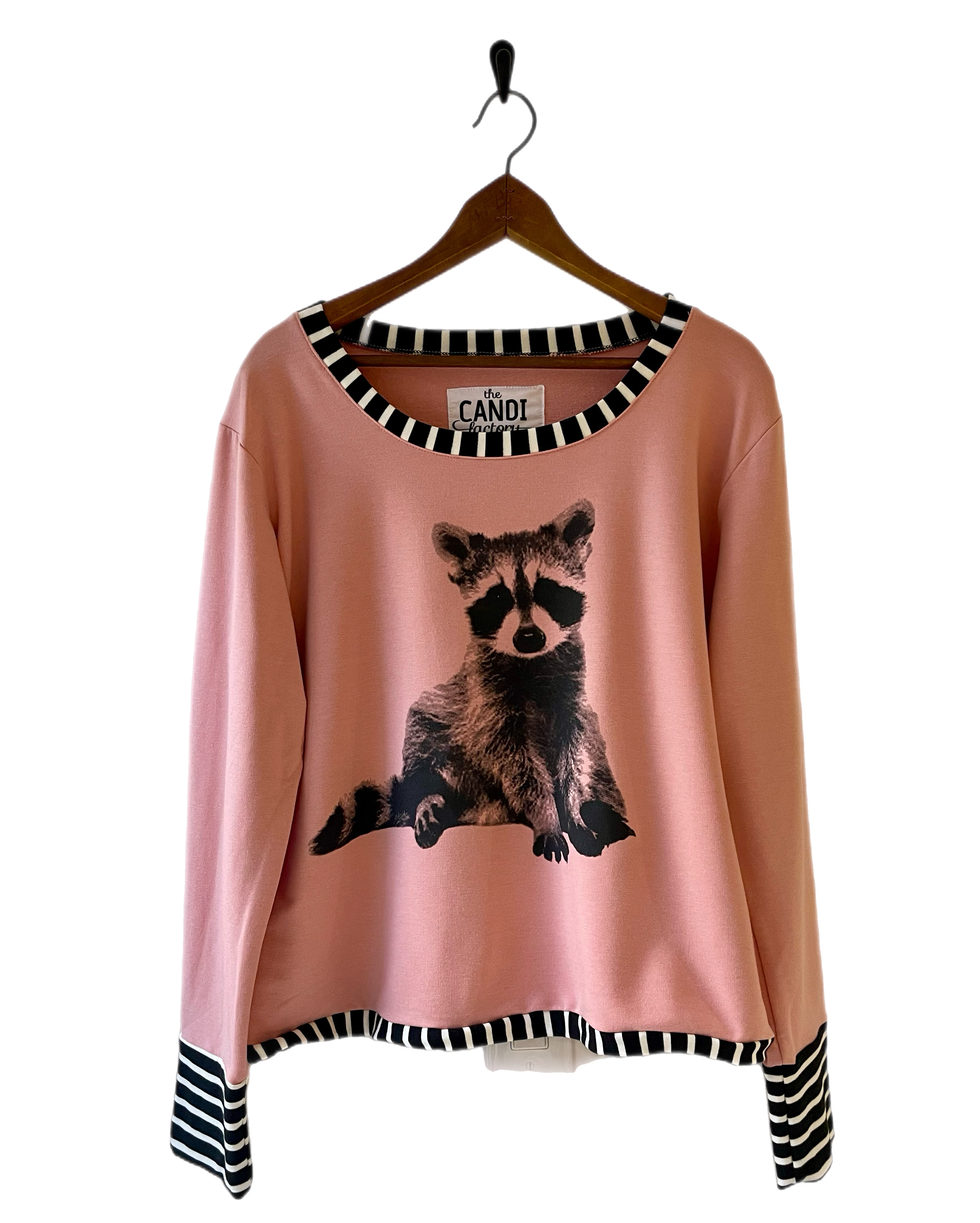 it has big cuffs...it has a screenprinted baby raccoon...what’s not to love.