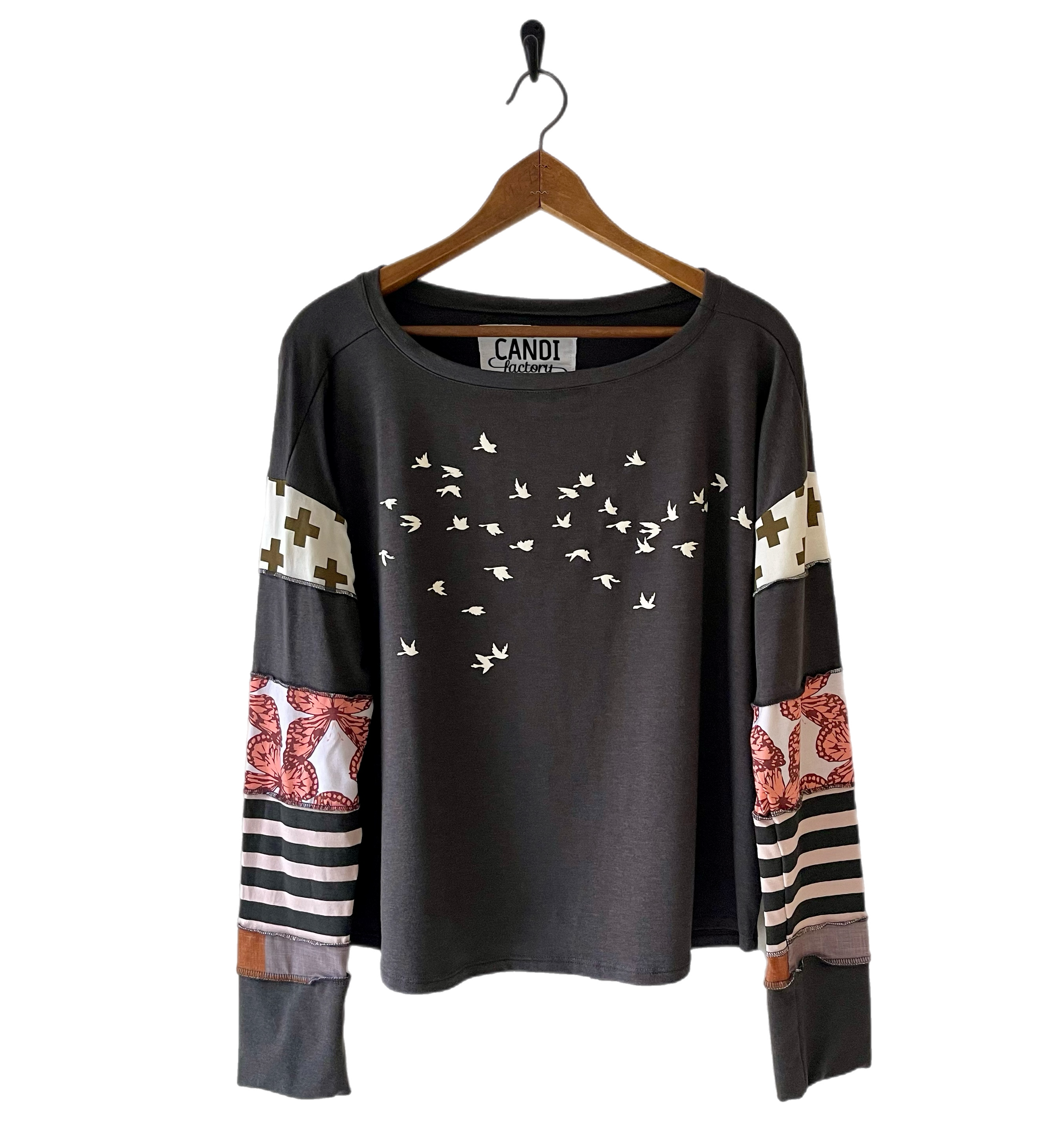 Each shirt is One of a Kind.  Screenprinted with the cutest little birds.