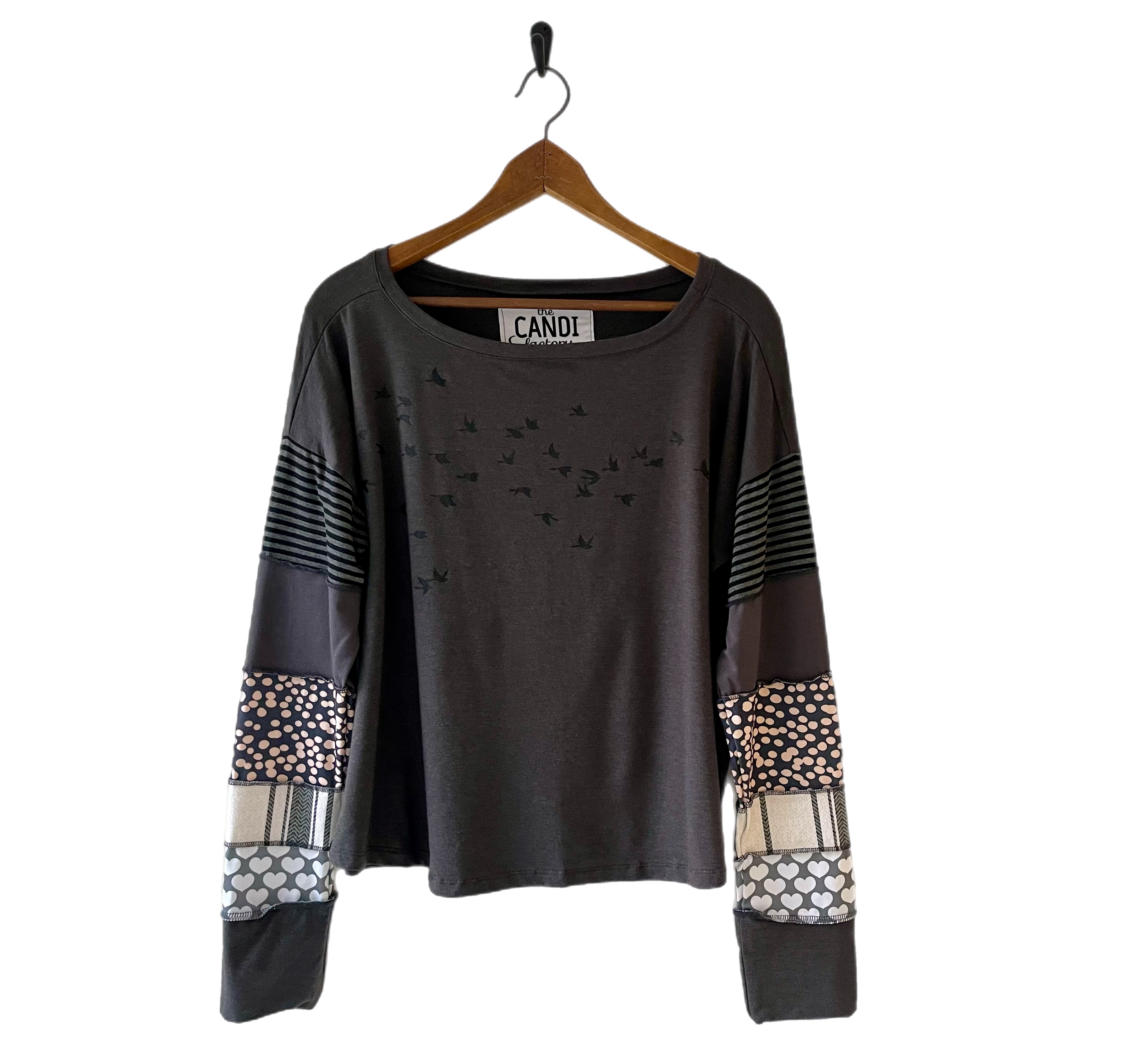 Each shirt is One of a Kind.  Screenprinted with the cutest little birds.