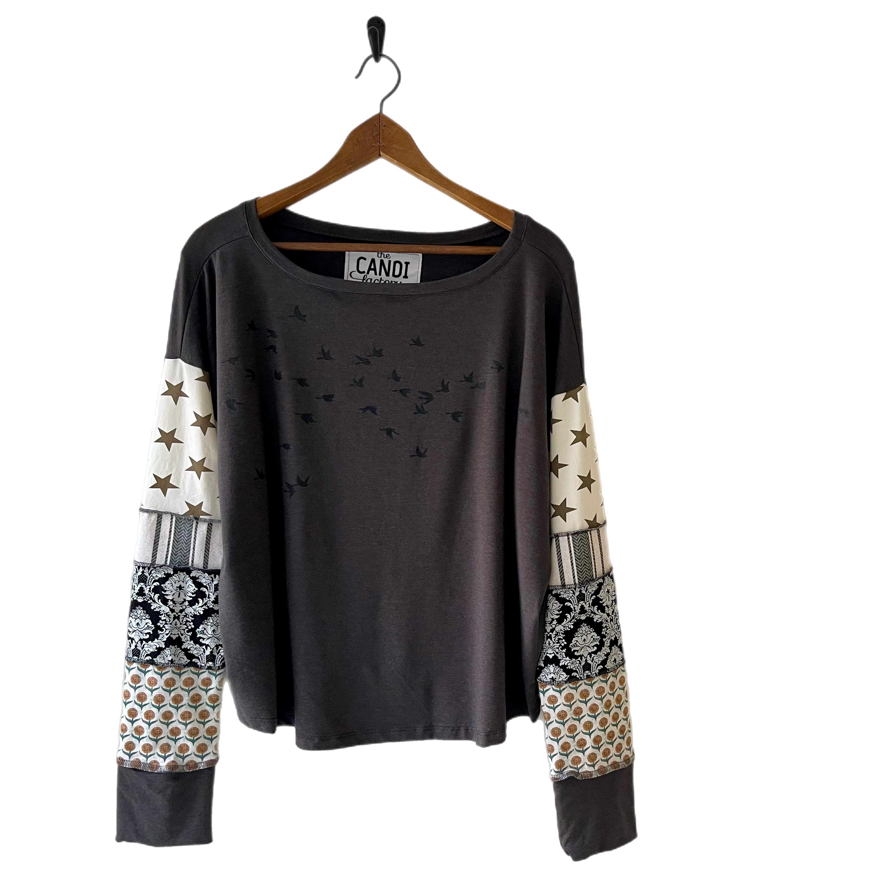 Each shirt is One of a Kind.  Screenprinted with the cutest little birds.